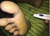[Figure 5], tuning fork, vibratip, biothesiometer, pin prick test, etc (Jayaprakash, 2011; Phulpoto, 2012; Arshad, 2016). The tuning fork, vibratip and biothesiometer are used to assess vibration sensation whereas the pinprick and monofilament is used to test touch sensation (Giovinco, 2015). One can use the above in combination to test both sensation and vibration and should check at least three to four sites. The common sites are plantar aspect of great toes, base of 1st, 3rd metatarsal, 5th metatarsal (Phulpoto, 2012; Giovinco, 2015; Arshad, 2016)
