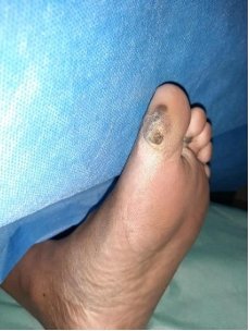 Figure 2: showing the plantar view of left foot (Look Component). Left great toe has callus, there is severe underlying